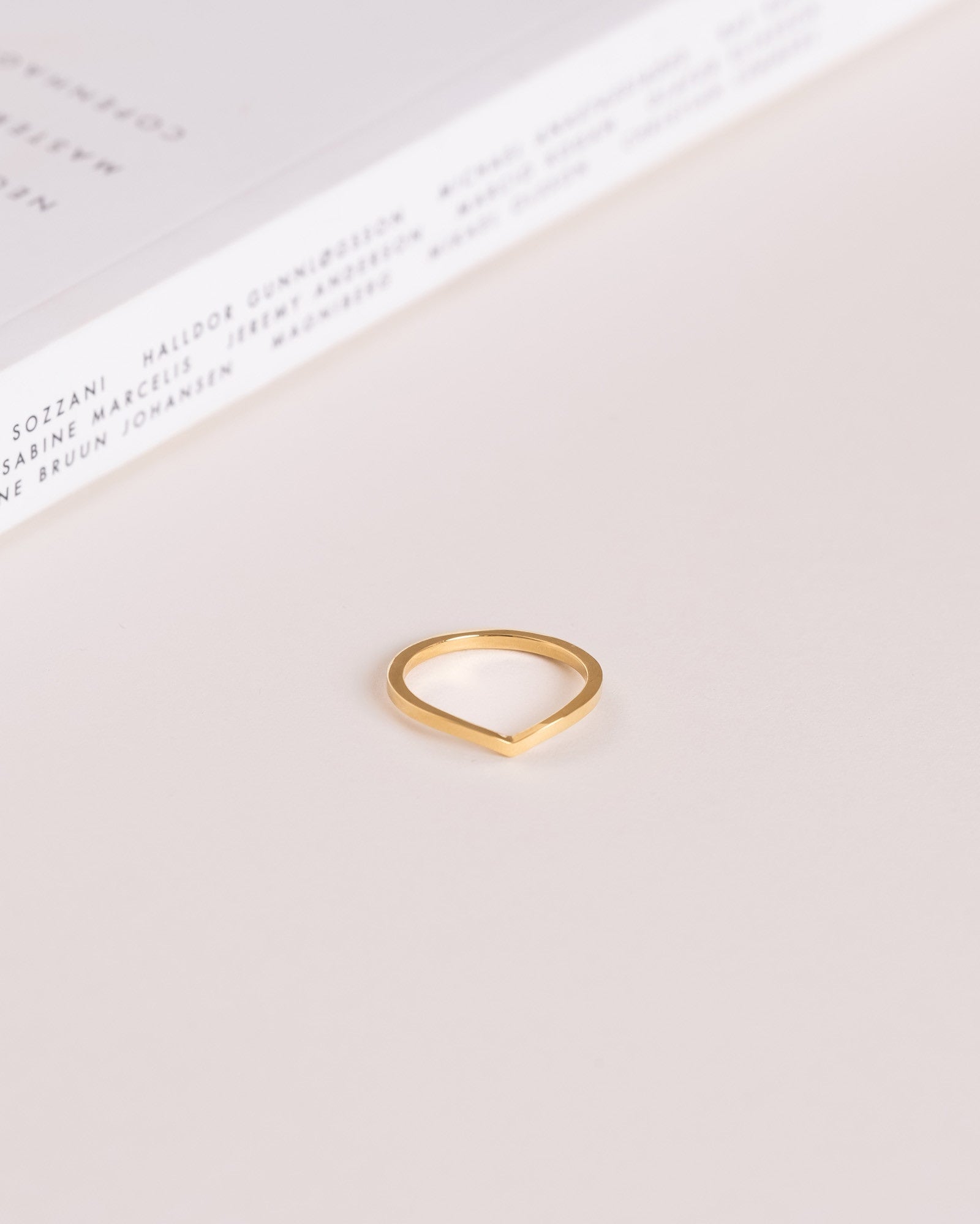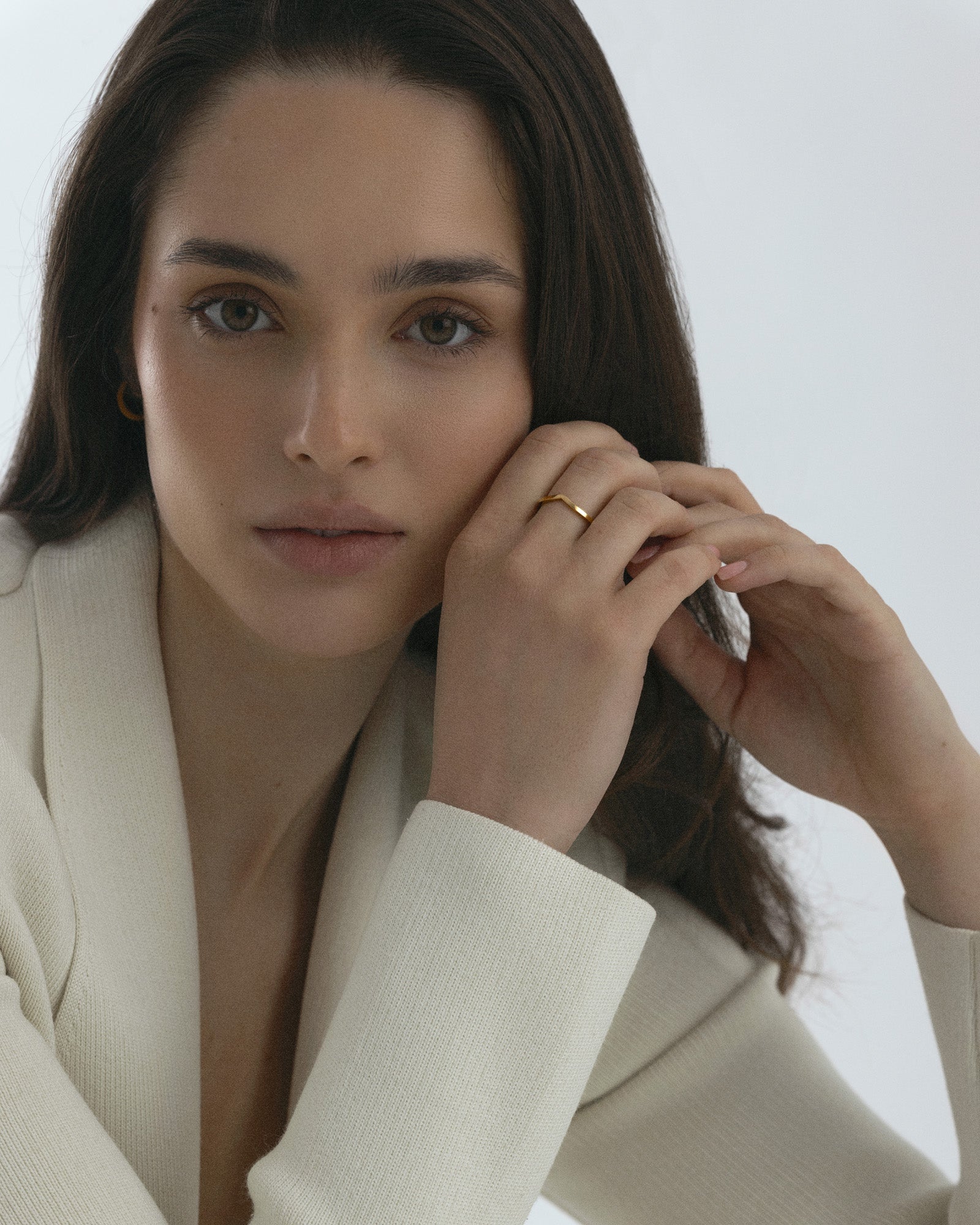 Honest Ring on ohut ja siro V-mallinen sormus. Valmistettu massiivisesta ruostumattomasta teräksestä ja pinnoitettu 18K kultaisella PVD-pinnoitteella – vedenkestävä ja kestävä. Käytä sitä joka päivä – ui, käy suihkussa ja treenaa ilman huolta värin haalistumisesta.