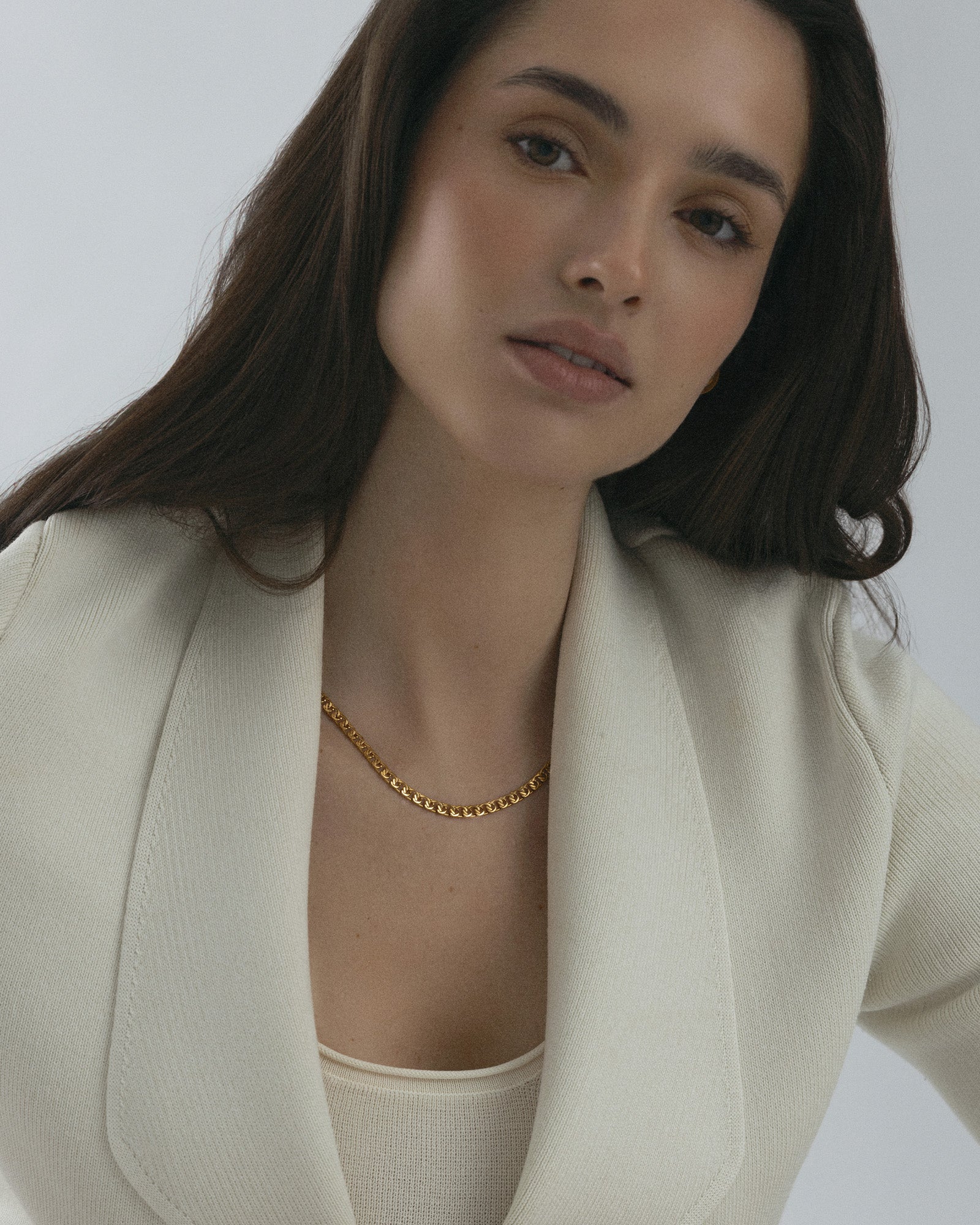 Infinity Necklace on klassinen kaulakoru, jossa on curb chain -muotoilu. Valmistettu ruostumattomasta teräksestä ja pinnoitettu 18K kullanvärisellä PVD-pinnoitteella – kestävä ja vettähylkivä, säilyttää värinsä ja kiiltonsa ajan mittaan. Pidennysketju on helppo irrottaa istuvuuden räätälöimiseksi.