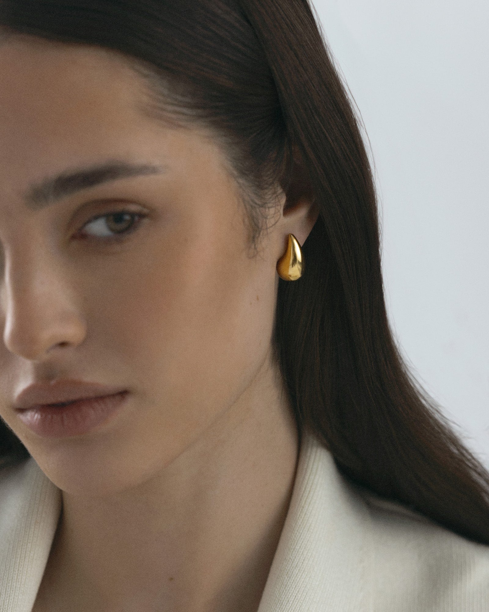 Plain Daring -korvakorut ovat pisaranmuotoiset korvakorut pehmeällä ja elegantilla muotoilulla. Valmistettu ruostumattomasta teräksestä ja päällystetty 18K kullanvärisellä PVD-pinnoitteella – kestävät ja vedenkestävät, säilyttävät värinsä ja tyylinsä ajan myötä.