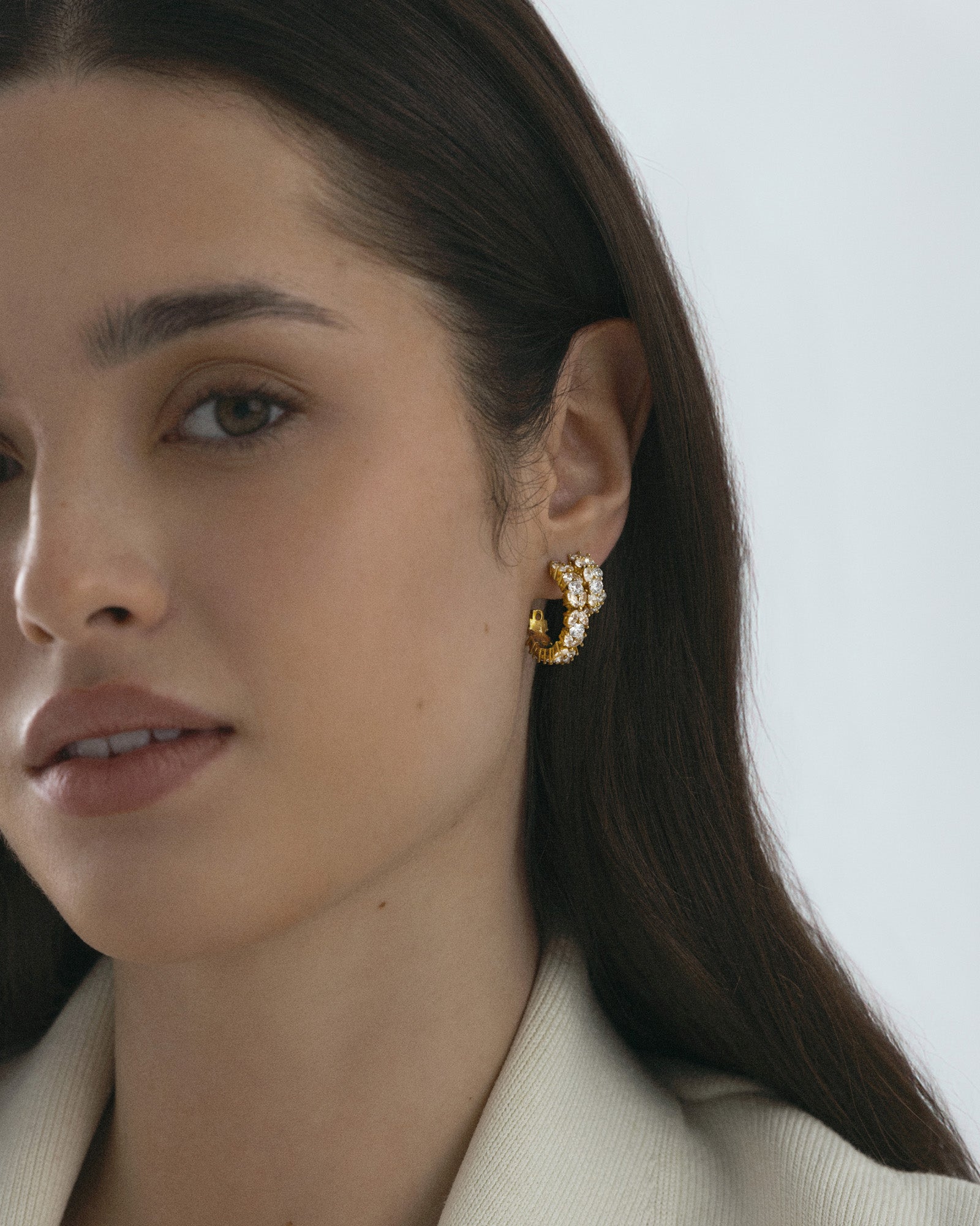Elegantit korvakorut, joita koristavat kuutiolliset zirkoniat. Valmistettu ruostumattomasta teräksestä ja päällystetty 18K kullanvärisellä PVD-pinnoitteella – kestävät ja vedenkestävät, säilyttävät värinsä ja tyylinsä ajan myötä. Suunniteltu kunnianosoitukseksi naisille ympäri maailmaa.