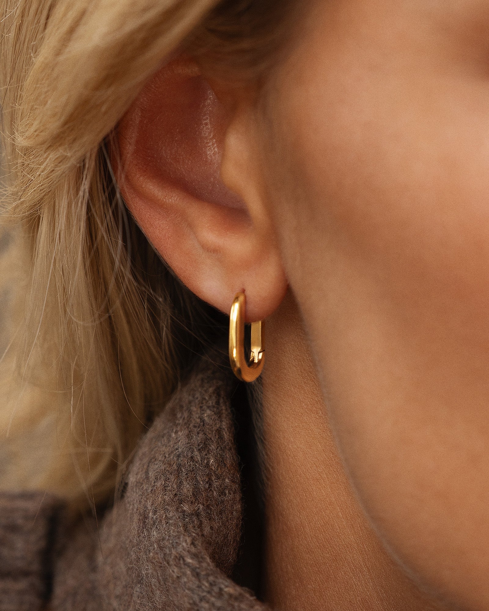 Slim U-Hoops shimmer with a warm gold tone. The slim U-shape with softly rounded lines gives a clean, timeless look that’s easy to wear and style—from day to night.