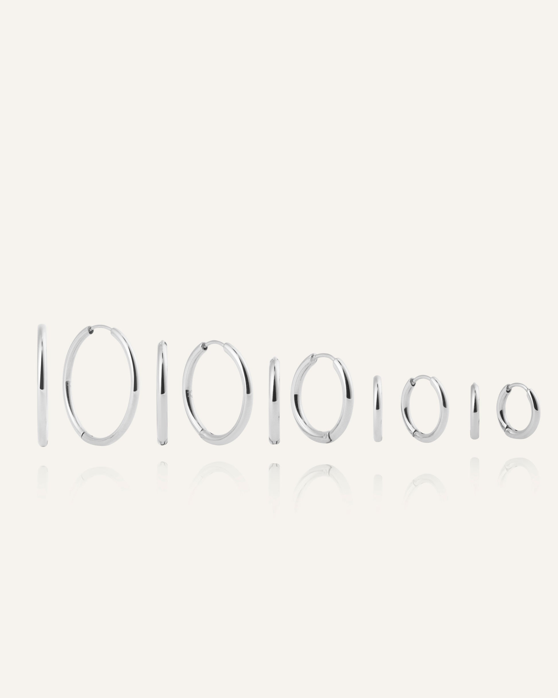 Slim Steel Hoops feature a slender, elegant profile that catches the light in a crisp silver tone. The pared-back design delivers a clean finish that works just as well solo as layered with other earrings.