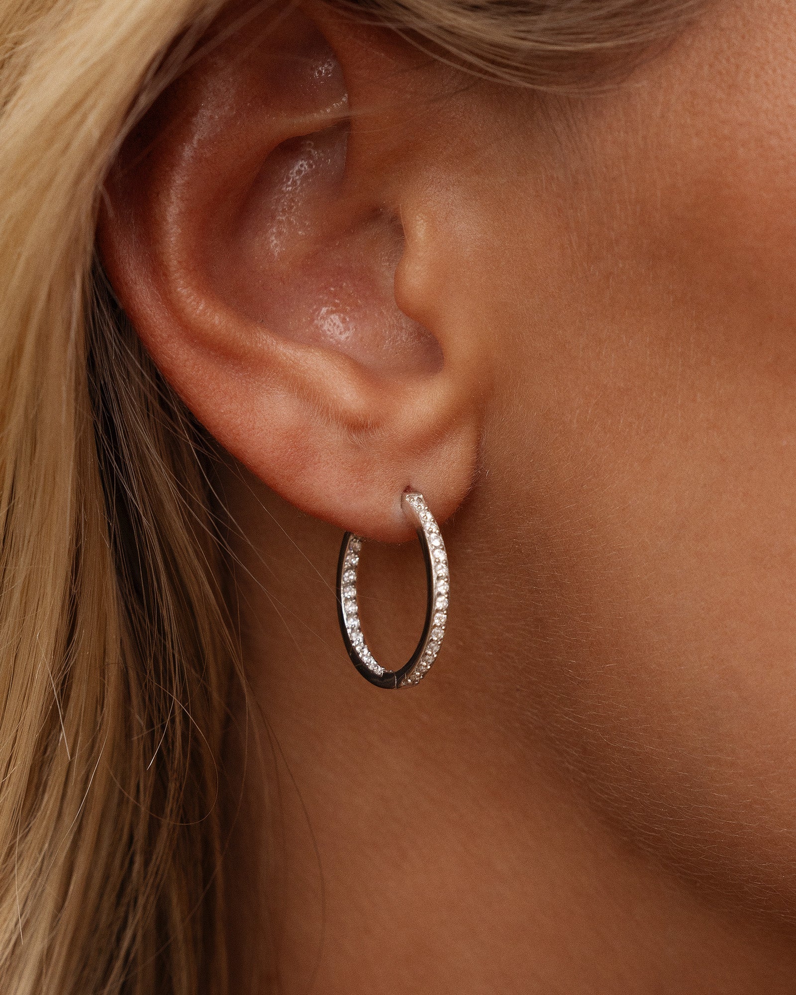 Sparkle Hoops shimmer softly in a silver tone. The slim hoops are adorned with white cubic zirconia that catch the light with every movement. Easy to wear, easy to style—from day to night.