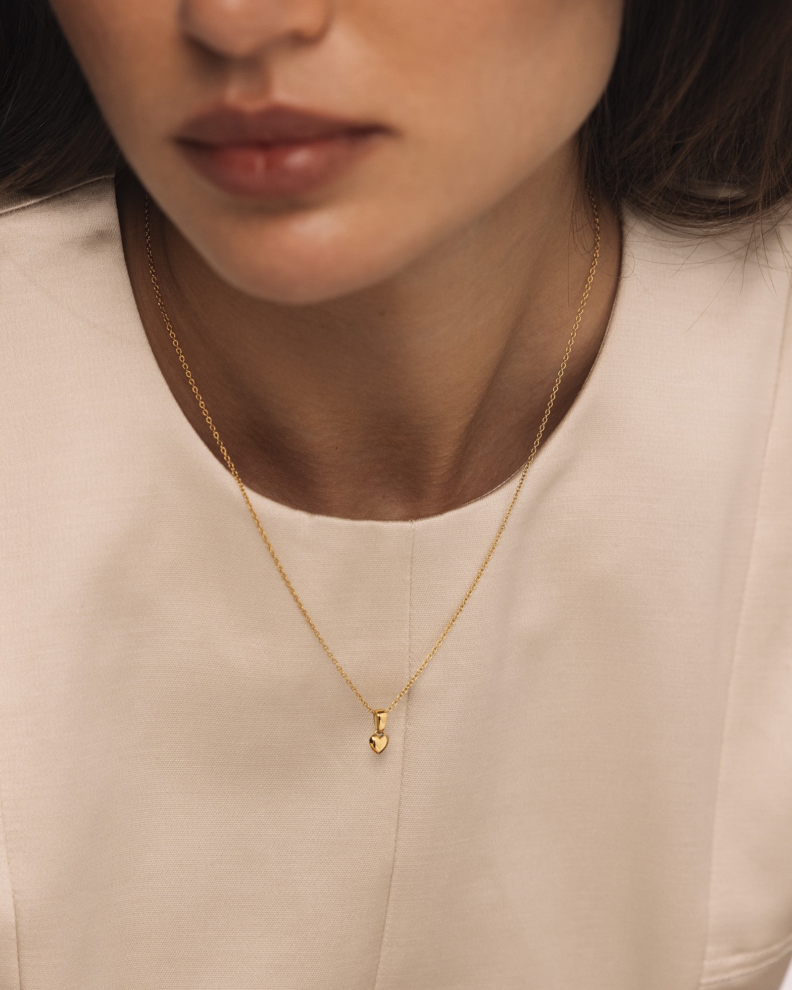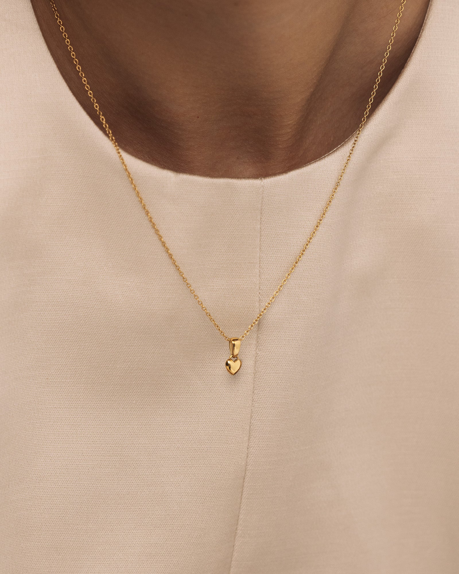 A delicate gold-plated necklace featuring a small heart pendant. Its clean, modern design makes it a timeless symbol of love, perfect for everyday elegance.